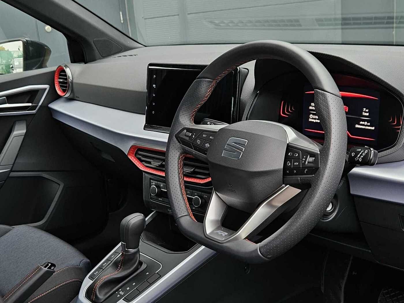 - Perforated Leather Flat-Bottomed Steering Wheel with Red Stitching and FR Logo with Leather Gear Knob and Handbrake