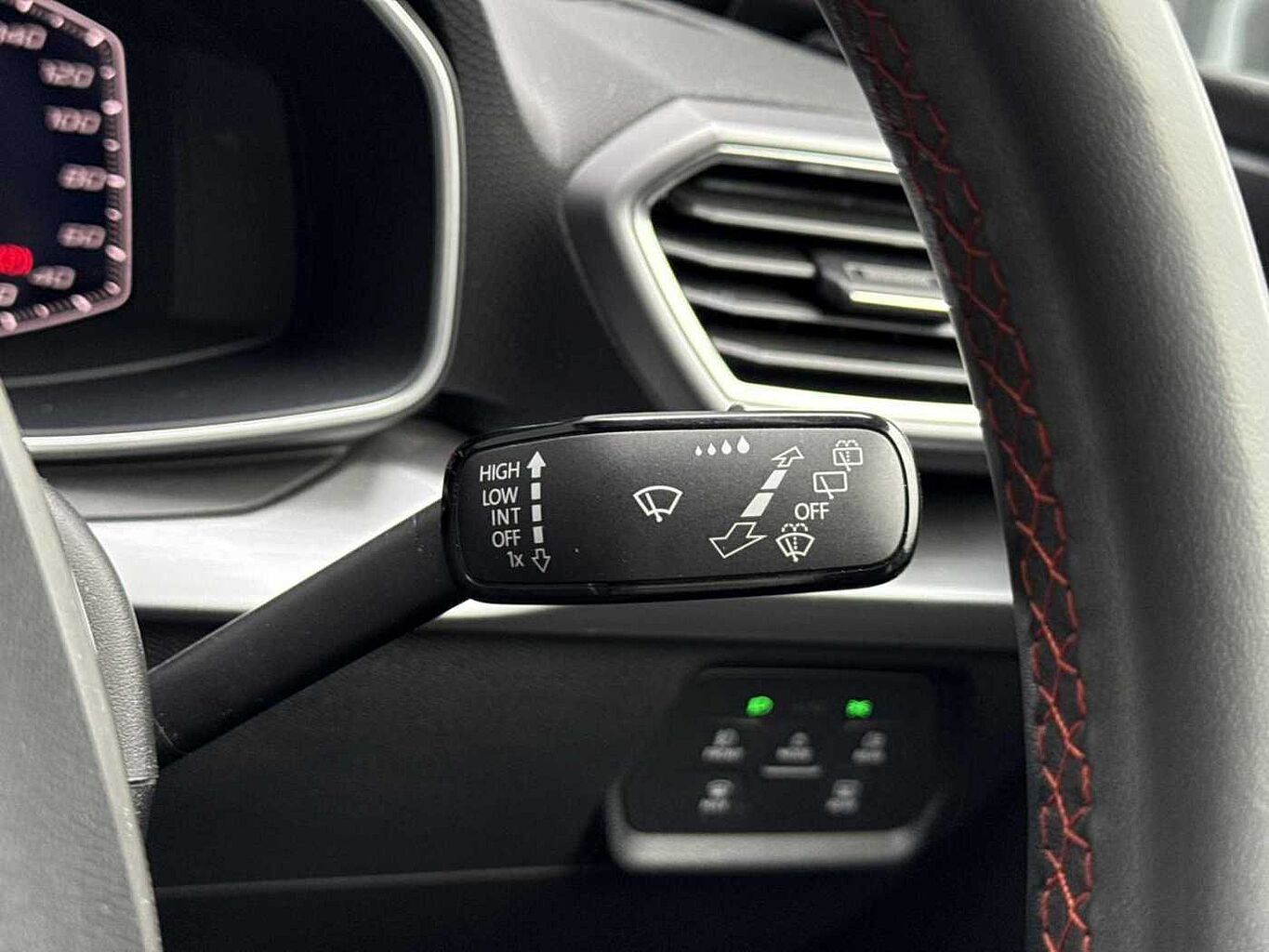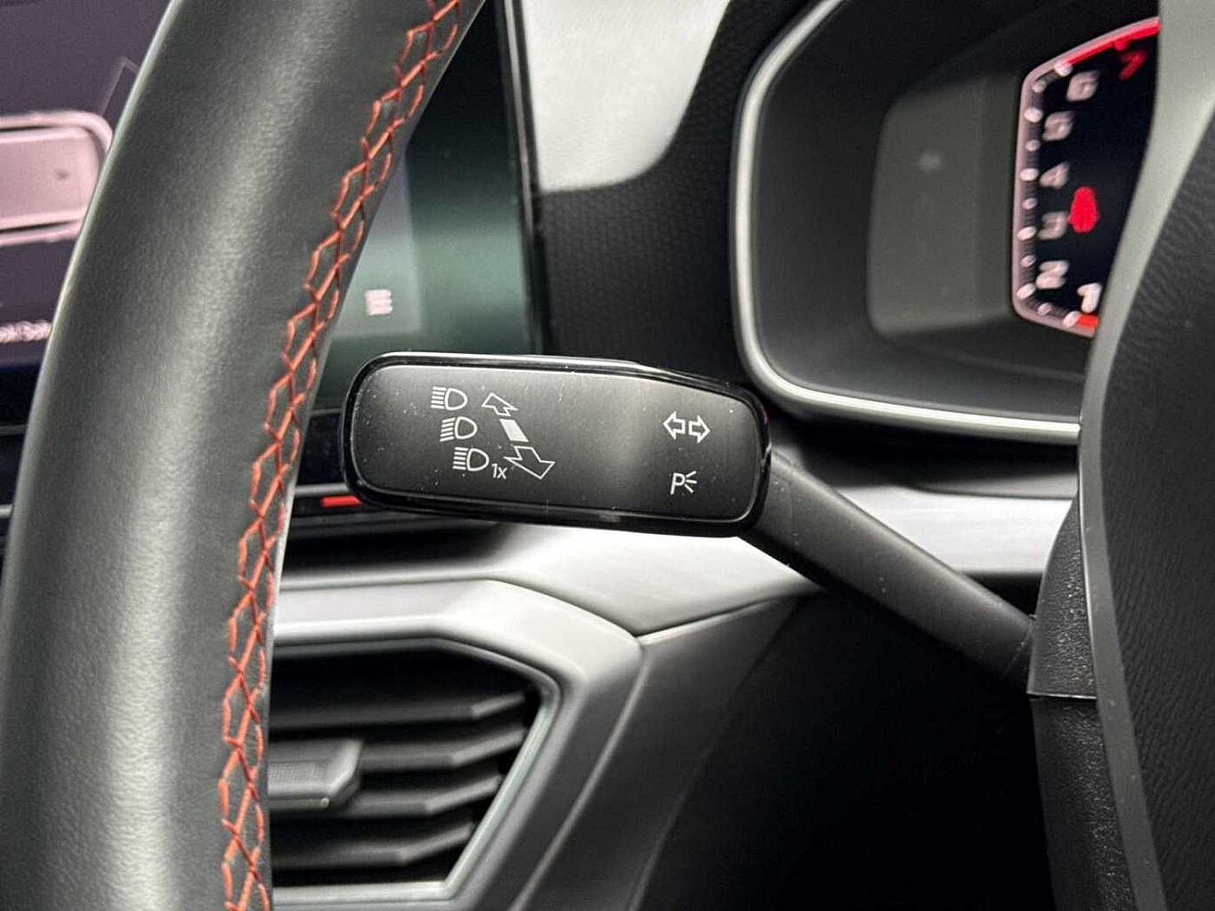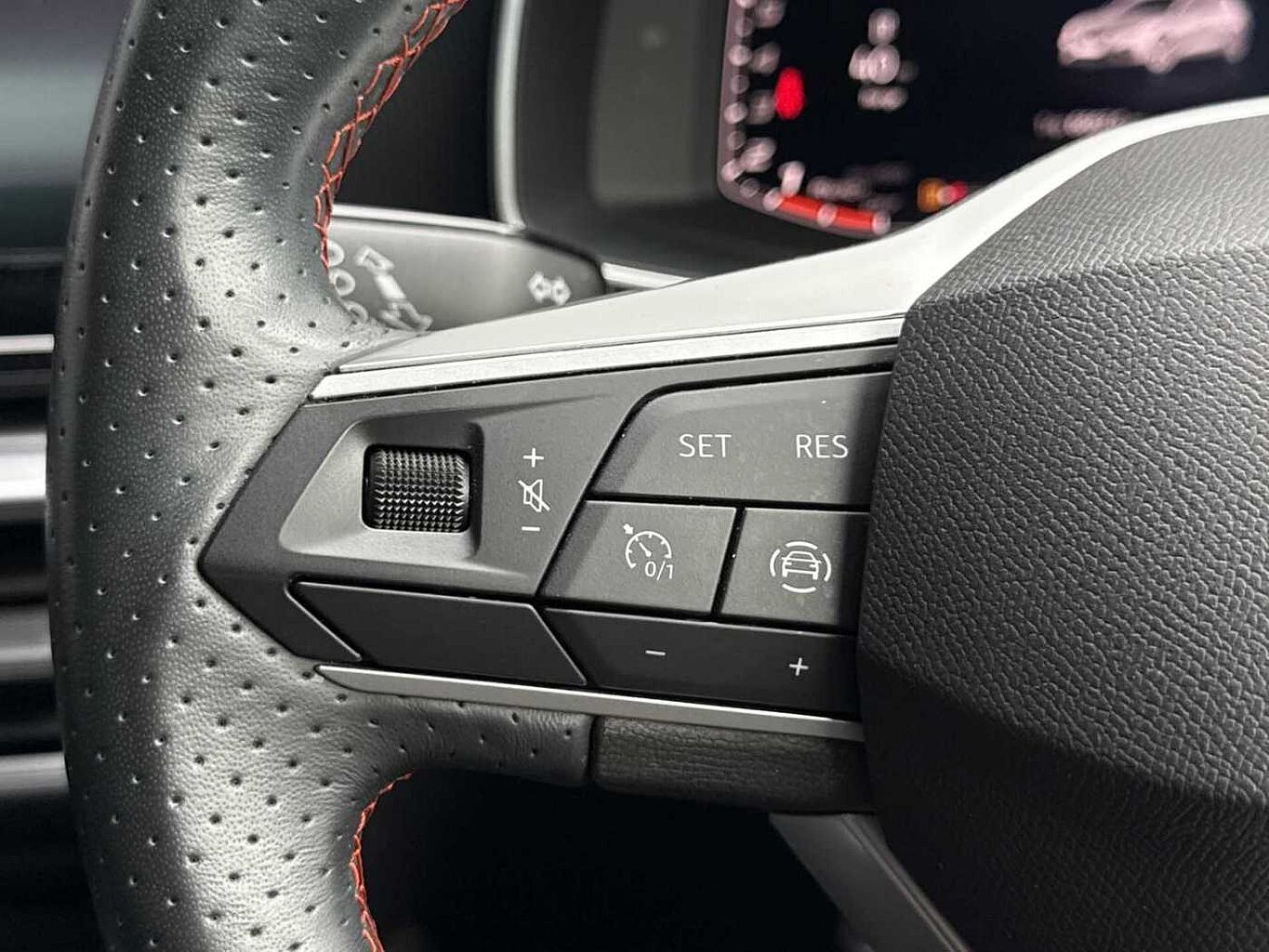 - Leather Flat Bottomed - Perforated Steering Wheel with Red Stitching and FR Logo